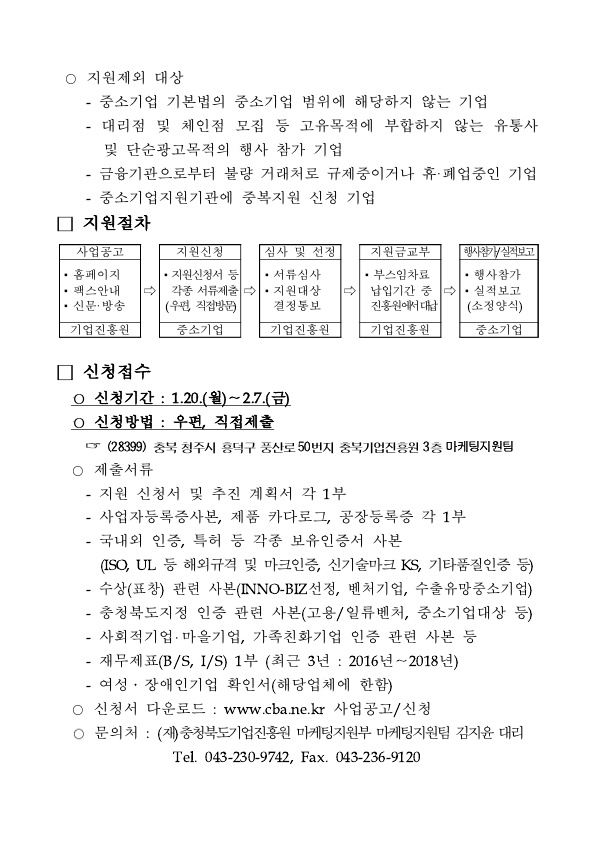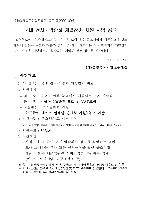 [신청마감] [충청북도 기업진흥원] 2020 국내 전시·박람회 개별참가 지원 사업 공고