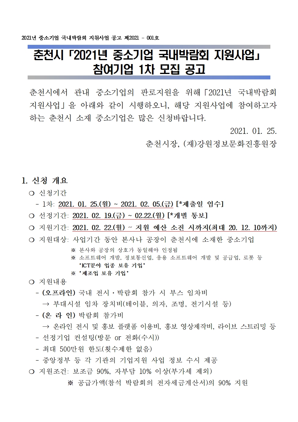 [춘천시] 2021년 중소기업 국내박람회 참가지원 사업 모집공고문(1차)